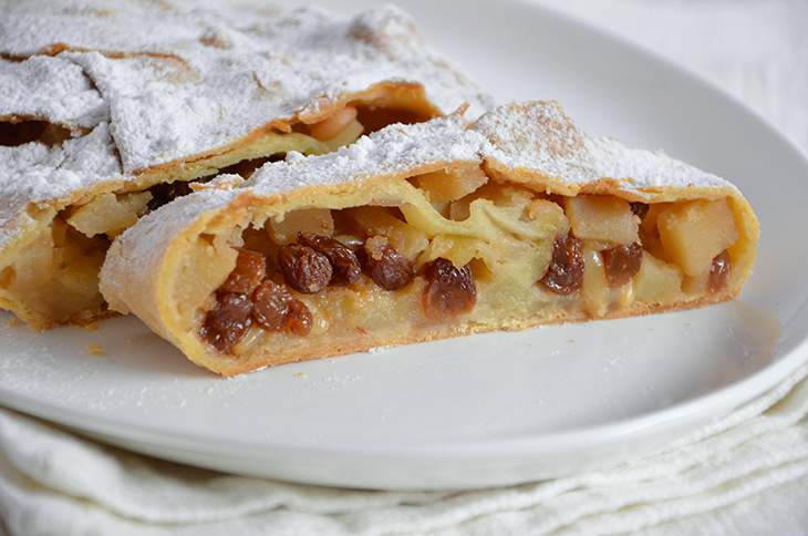A traditional Bavarian cake filled w/apple, pine nuts and raisins